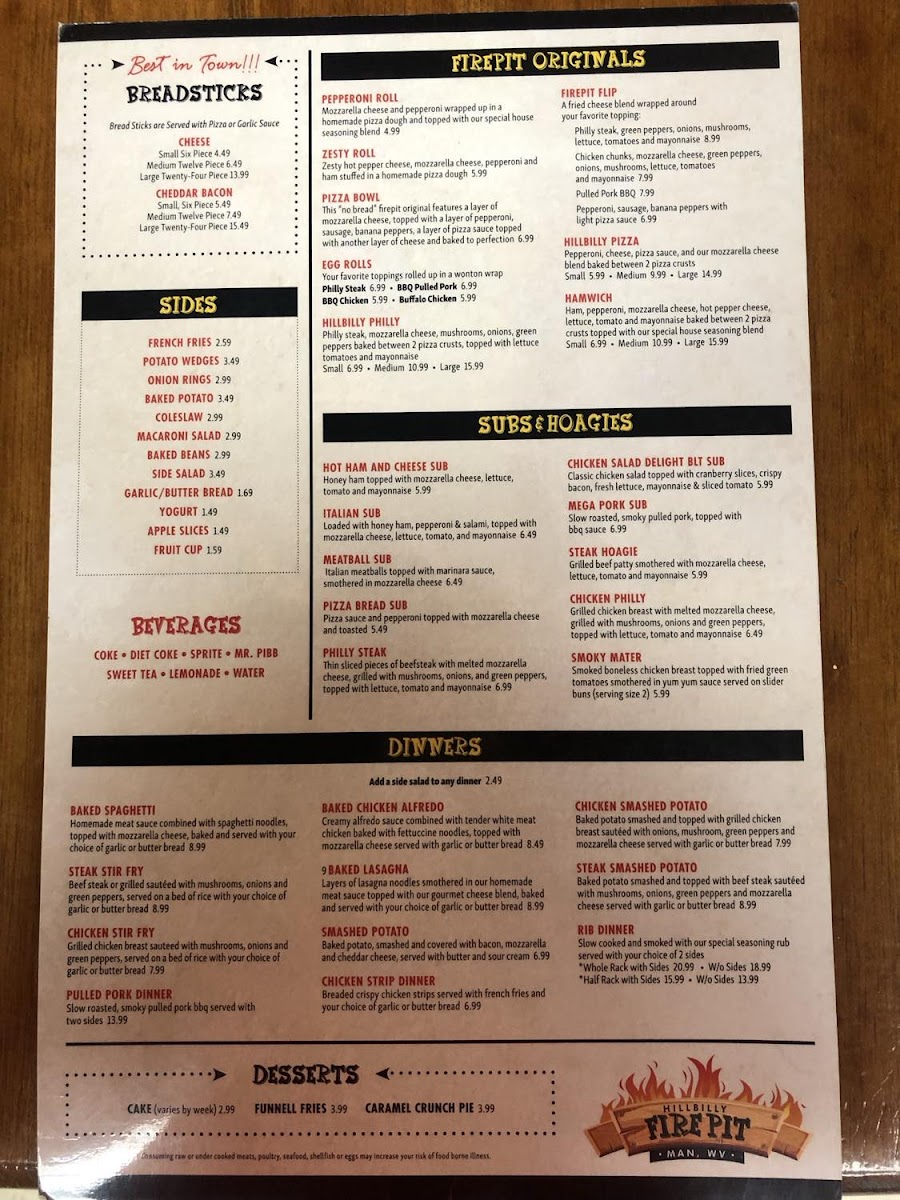 The menu is designed to fit the relaxed, friendly atmosphere of Fire Pit Pizza, making it a go-to spot for casual dinners with family or friends, weekend takeout, or grabbing a quick, satisfying meal anytime you need something easy and comforting. Pair your food with a cold fountain drink or sweet tea to complete the experience, and you’ll find that this menu balances generous portions with familiar, dependable flavors.